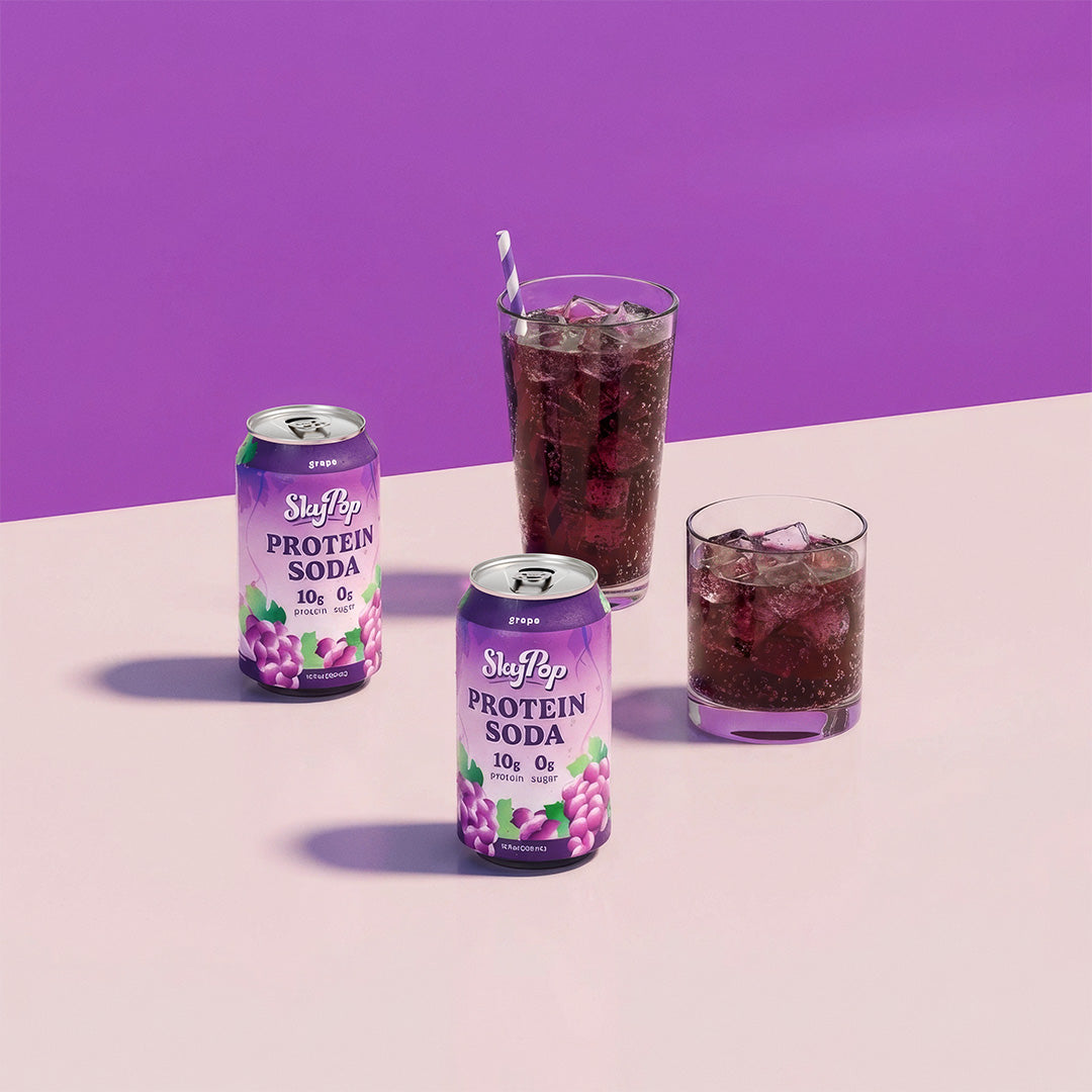 Sweet and candy-like grape flavor with 10g of complete whey protein, SkyPop delivers bold refreshment with zero sugar and only 45 calories. Made with no artificial flavors, colors, or high fructose corn syrup. Gluten-free, caffeine-free, and low in lactose, it’s the perfect on-the-go protein boost that tastes like real soda.