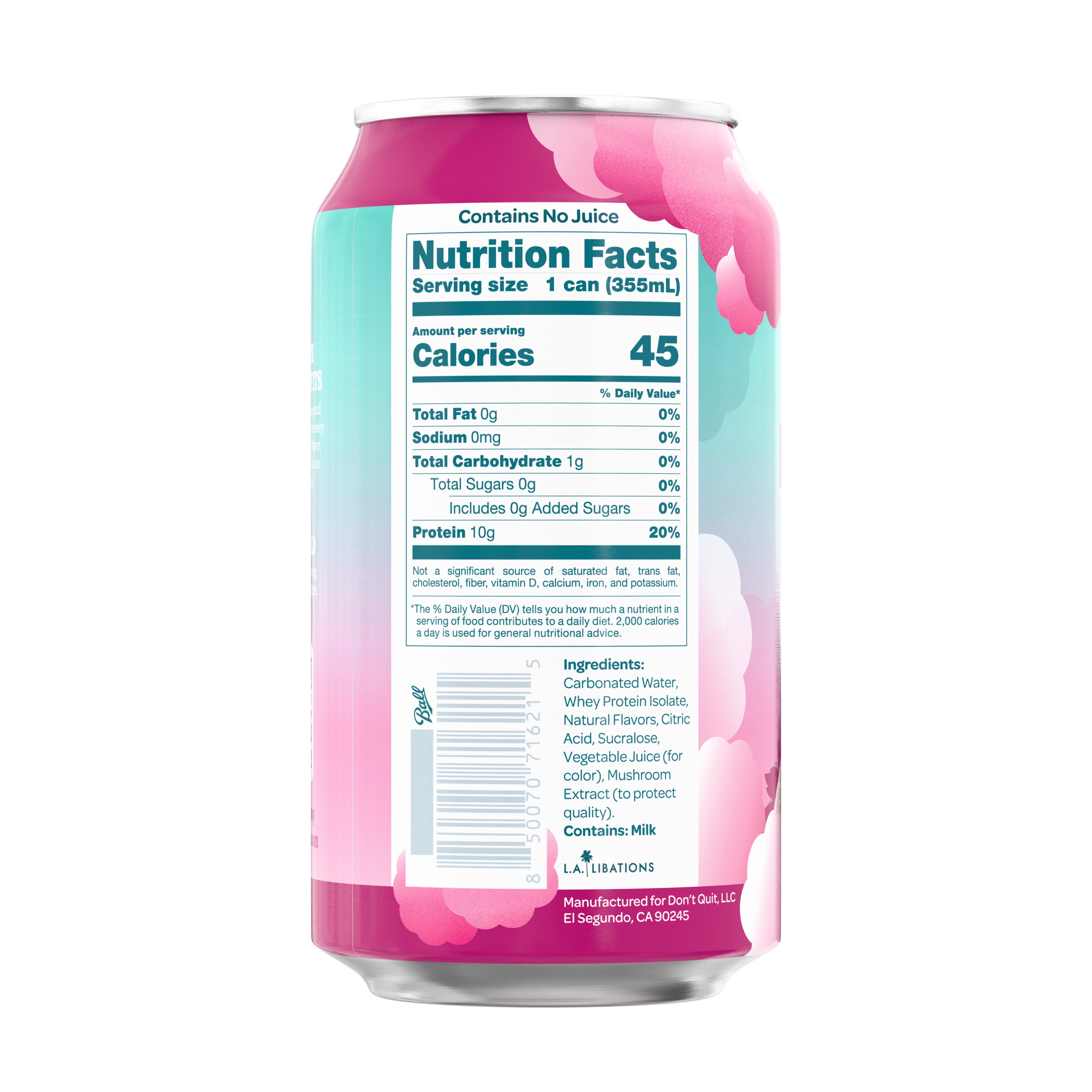 Playful, airy sweetness of spun sugar and a burst of ripe strawberry with 10g of complete whey protein, SkyPop delivers bold refreshment with zero sugar and only 45 calories. Made with no artificial flavors, colors, or high fructose corn syrup. Gluten-free, caffeine-free, and low in lactose, it’s the perfect on-the-go protein boost that tastes like real soda.